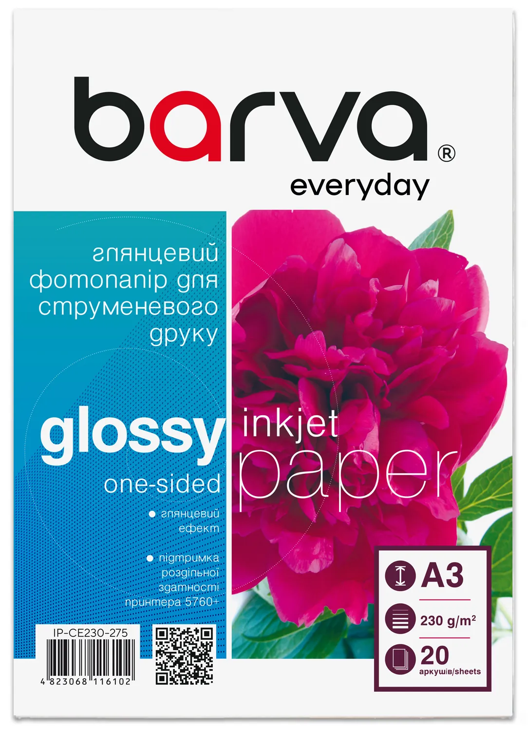 Фотопапір глянцевий 230 г/м2, A3, 20 арк Everyday Barva (IP-CE230-275) опис