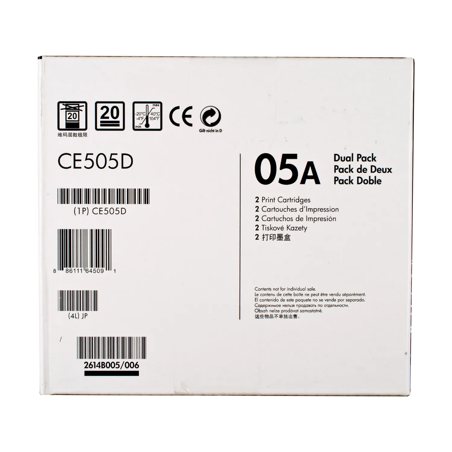 Оригінальний картридж CE505D розроблений компанією HP, яка гарантує якісний друк протягом всього ресурсу - 2*2300 сторінок. Картридж 05A чорний HP (CE505D) відноситься до групи оригінальних витратних матеріалів, єдиним мінусом яких є висока вартість.