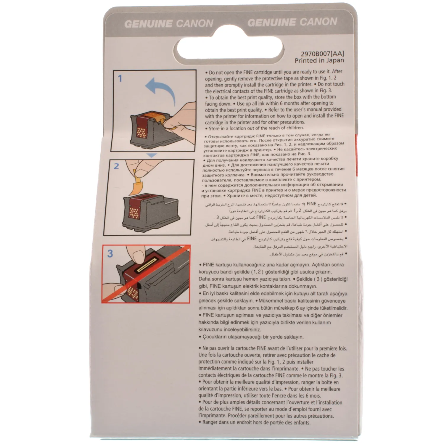 Як розпізнати оригінальні картриджі Canon? На картонній упаковці всіх оригінальних картриджів розміщена голограма – в вертикальному положенні вона переливається золотим кольором, а в горизонтальному – яскраво-зеленим.