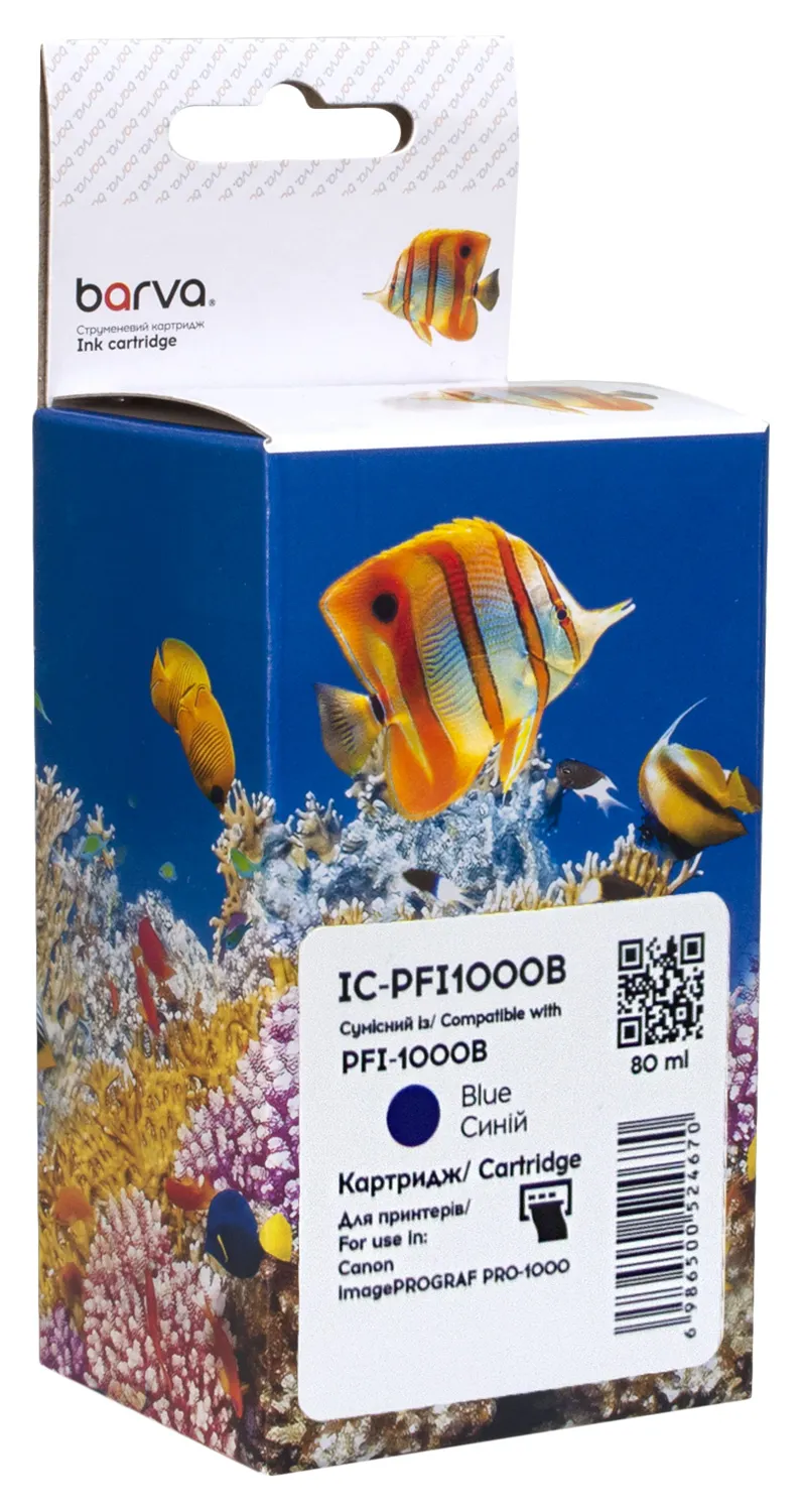 Загалом, струменевий картридж BARVA - це вигідна альтернатива оригінальним витратним матеріалам, яка поєднує в собі зручність використання, високу якість друку та надійність. Важливо! Перед тим, як замовити Картридж сумісний Canon PFI-1000B (0555C001) 80 мл, синій Barva (IC-PFI1000B), уважно перевірте його сумісність із вашим пристроєм друку.