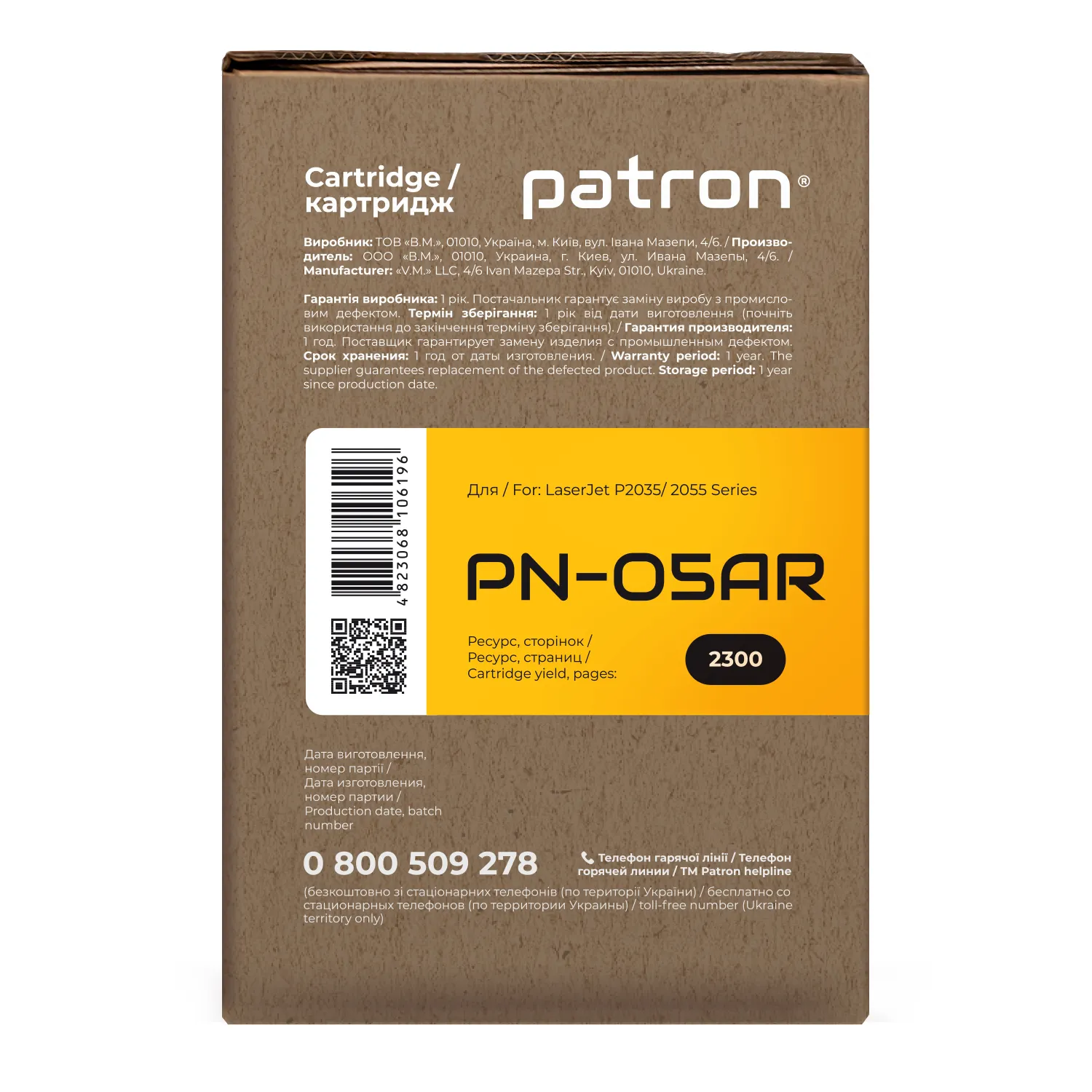 Ми потурбувалися про те, щоб упаковка картриджа була не лише екологічною, функціональною, мала мінімально можливі фізичні розміри, але і містила усю необхідну інформацію. На яскраво-помаранчевій етикетці знаходиться інформація про картридж, його сумісність з друкувальними пристроями, номер партії, дата виготовлення, контакти виробника, а також номер телефону безкоштовної гарячої лінії для українських споживачів.