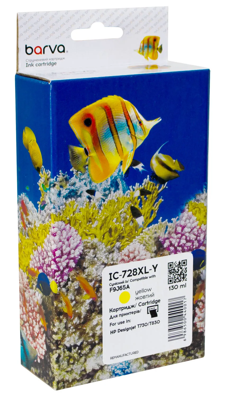 - Картридж сумісний HP 728 (F9K15A) версія U1-U30, 300 мл, жовтий Barva (IC-728XL-Y)