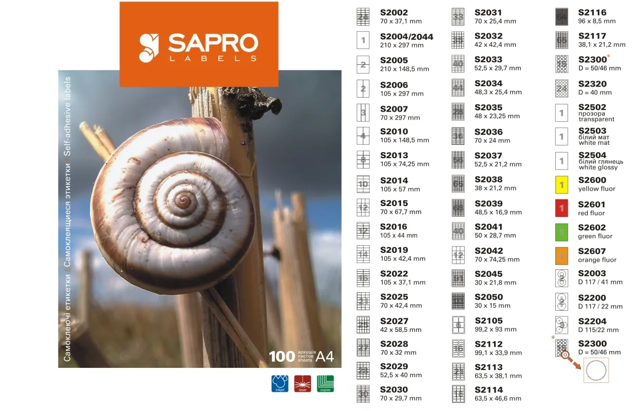 Дані етикетки самоклеючі а4 Sapro мають наступні особливості: