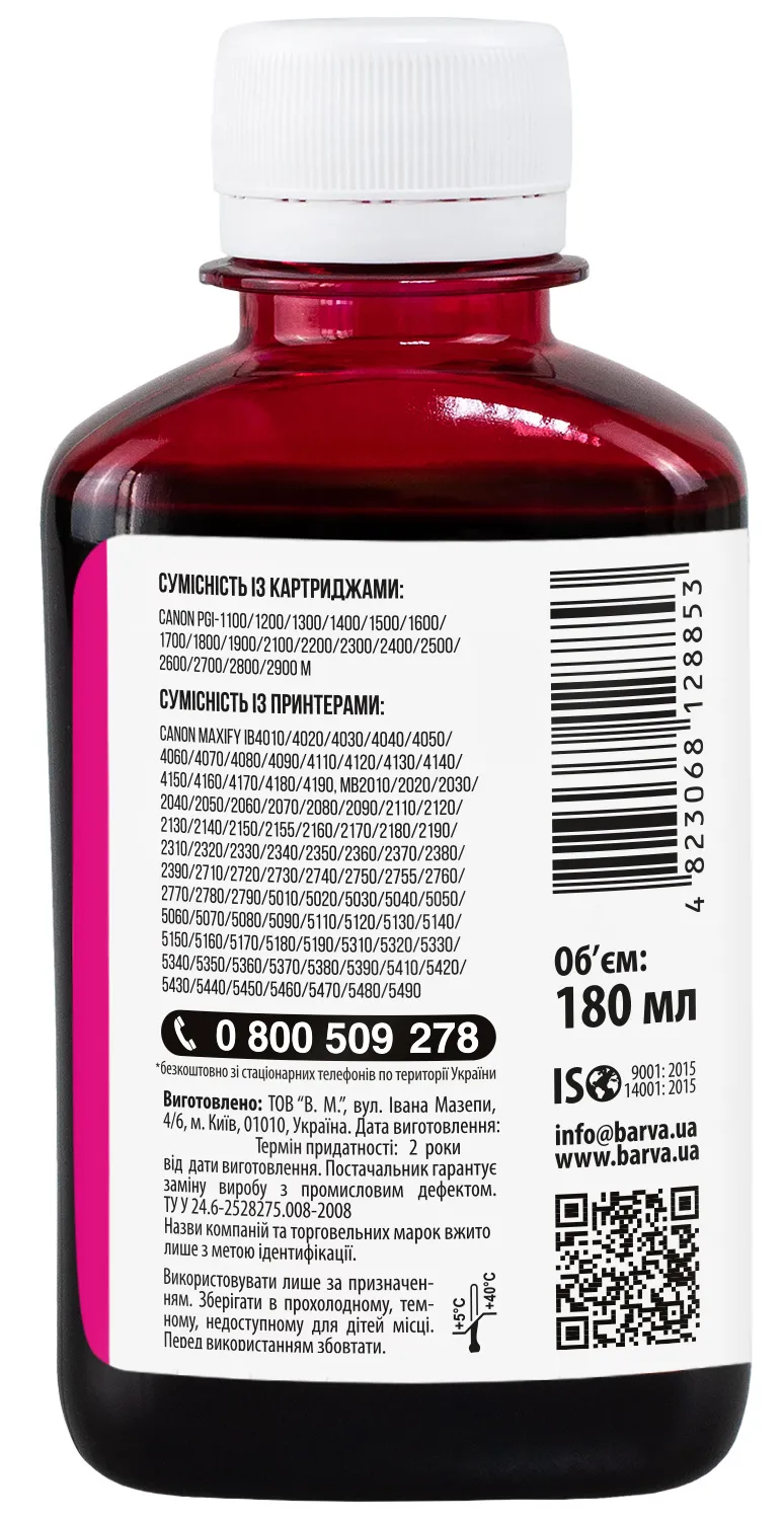 Данная краска для принтера Canon Barva имеет фасовку – 180 мл: