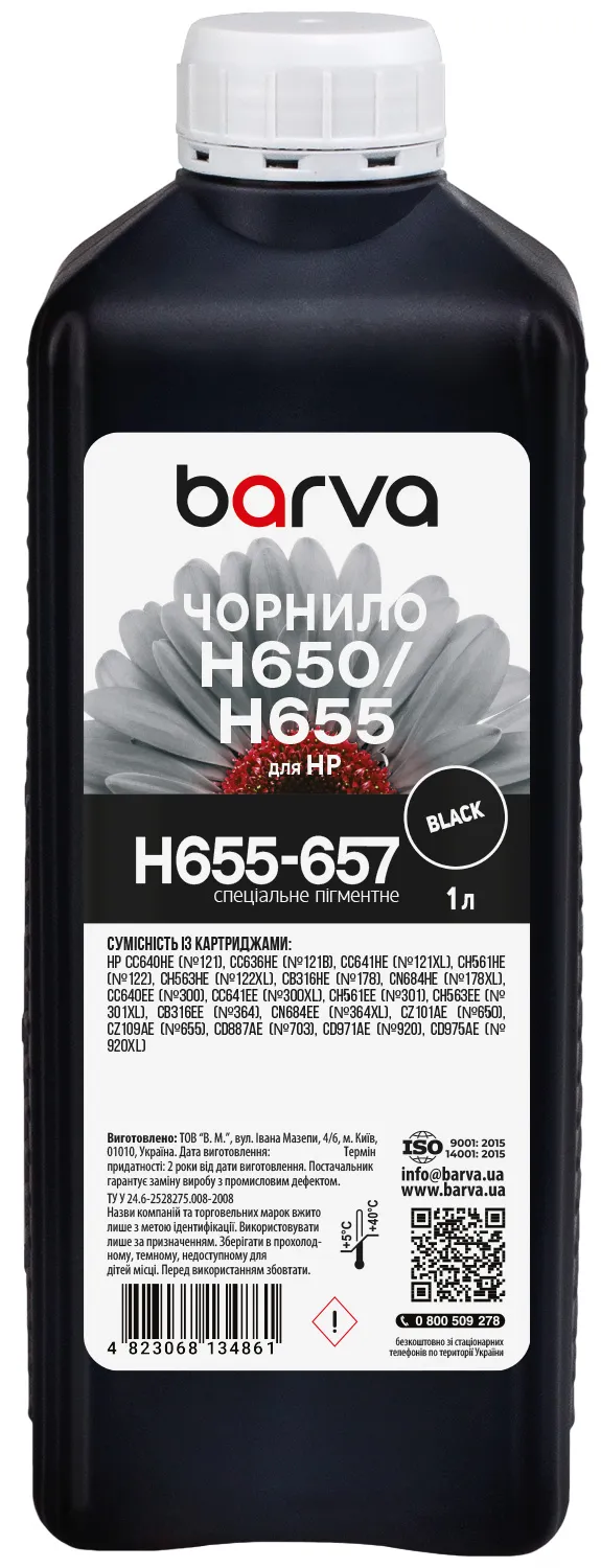 Чернила для HP 122/178/650/655 специальные 1 л, пигментные, черные Barva (H655-657) - прекрасный выбор для вас