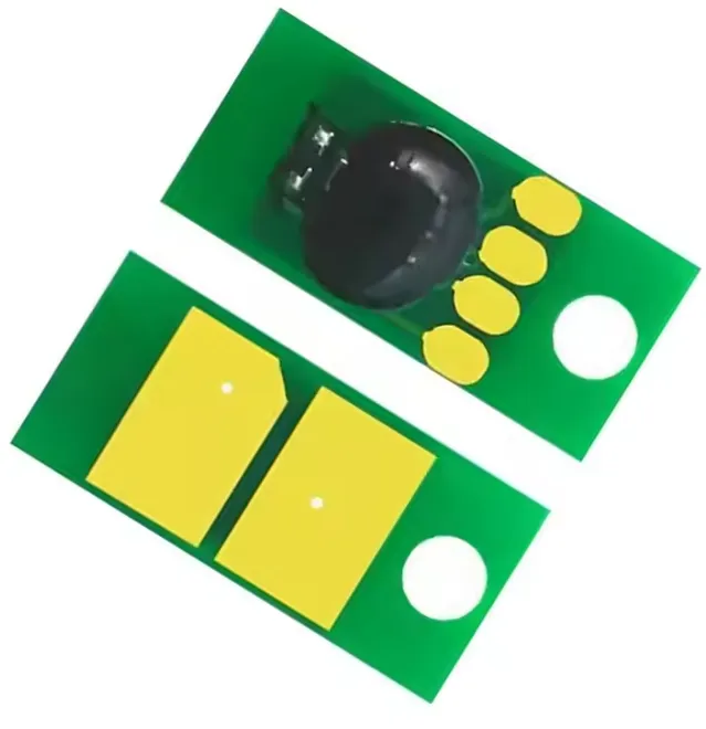 Что такое чип для картриджа? Это небольшая по размеру микросхема, в которую вшита информация о ресурсе самого картриджа, обеспечен функцией обмена данными с принтером. Проще говоря, благодаря чипу аппарат может посчитать количество отпечатанных страниц. В момент, когда счётчик страниц подошел к концу, вы увидите предупреждение о том, что картридж закончился и его необходимо заменить, даже если в бункере картриджа остался неиспользованный тонер.