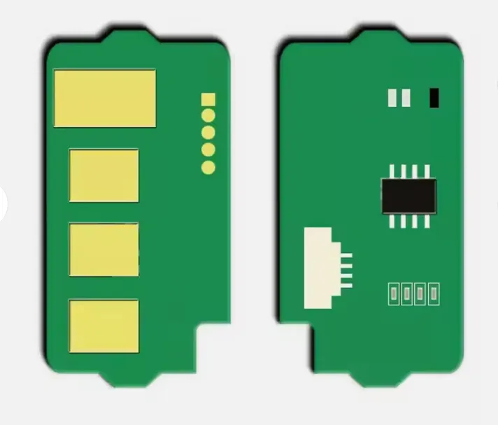 Что такое чип для картриджа? Это небольшая по размеру микросхема, в которую вшита информация о ресурсе самого картриджа, обеспечен функцией обмена данными с принтером. Проще говоря, благодаря чипу аппарат может посчитать количество отпечатанных страниц. В момент, когда счётчик страниц подошел к концу, вы увидите предупреждение о том, что картридж закончился и его необходимо заменить, даже если в бункере картриджа остался неиспользованный тонер.