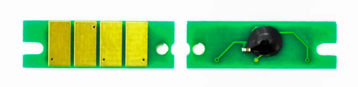 Что такое чип для картриджа? Это небольшая по размеру микросхема, в которую вшита информация о ресурсе самого картриджа, обеспечен функцией обмена данными с принтером. Проще говоря, благодаря чипу аппарат может посчитать количество отпечатанных страниц. В момент, когда счётчик страниц подошел к концу, вы увидите предупреждение о том, что картридж закончился и его необходимо заменить, даже если в бункере картриджа остался неиспользованный тонер.