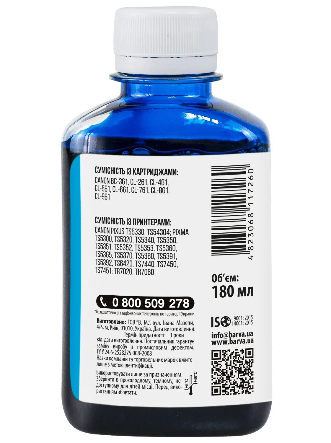 Данная краска для принтера Canon Barva имеет фасовку – 180 мл: