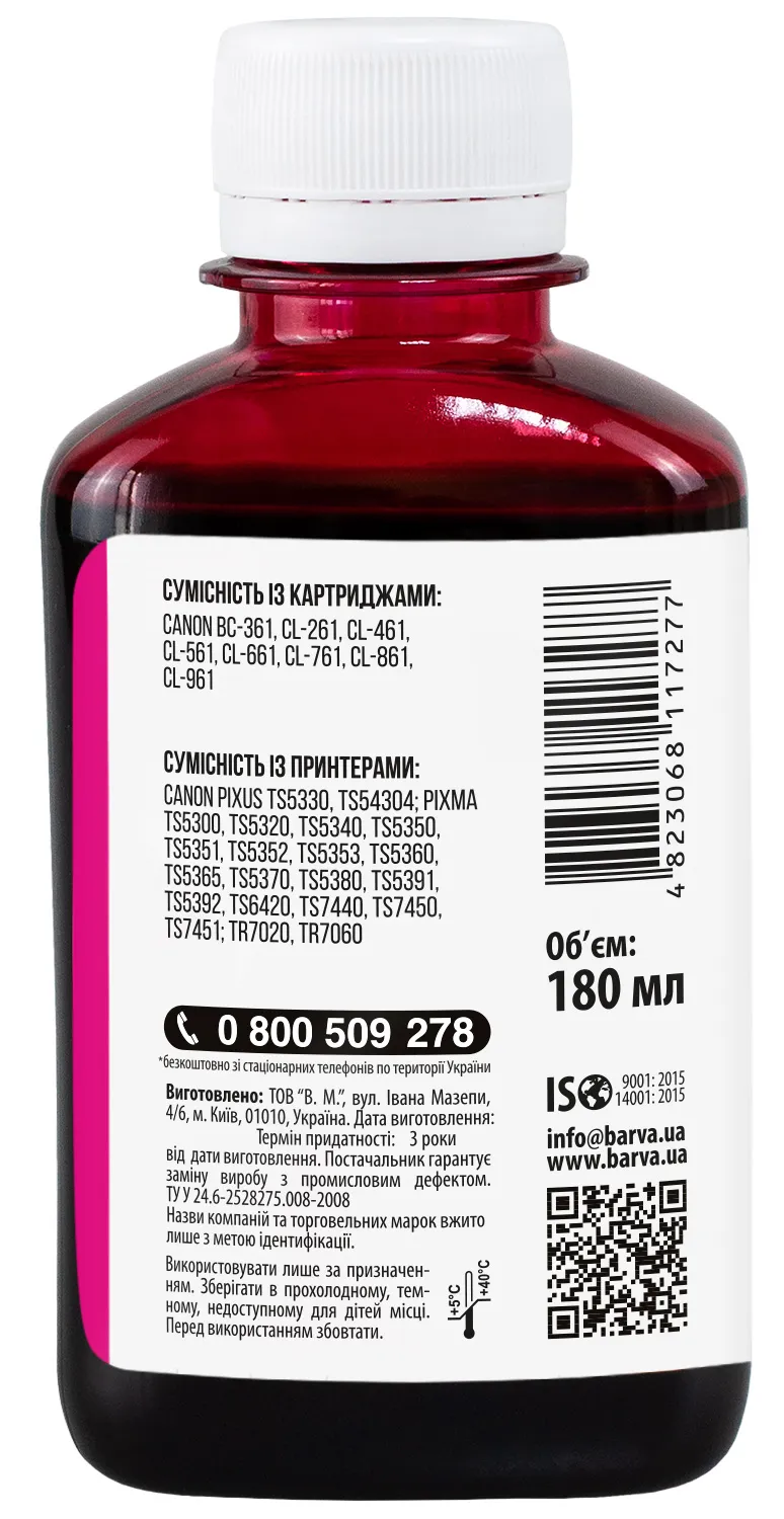 Данная краска для принтера Canon Barva имеет фасовку – 180 мл: