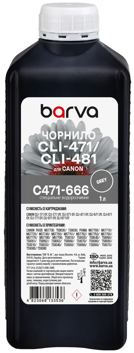 Вы можете купить Чернила для Canon CLI-471 GY специальные 1 л, водорастворимые, серые Barva (C471-666) в нашем интернет-магазине с доставкой по Киеву и всей Украине.