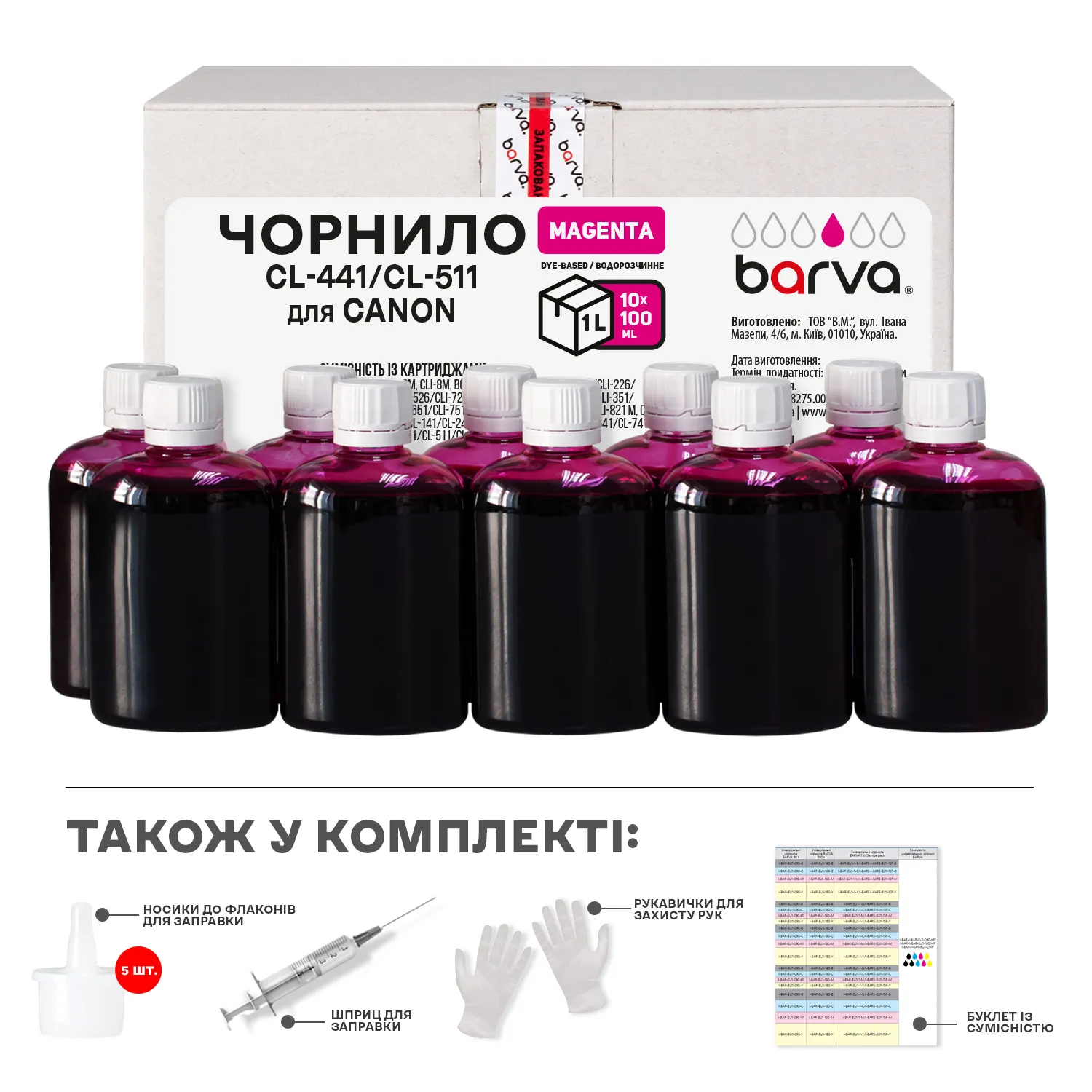Чернила совместимые для Canon CL-441/CLI-521/CL-511 специальные 10x100 мл, водорастворимые, пурпурные Service Pack Barva (C521-1SP-M) - лучшие товары для вашего принтера