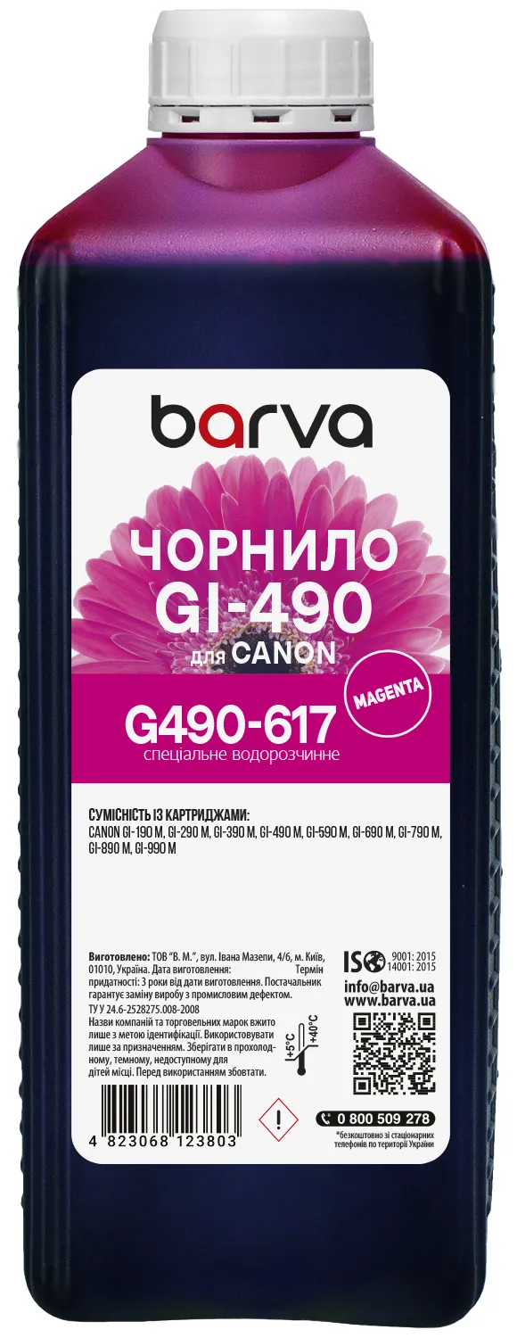 - Чернила для Canon GI-490 M специальные 1 л, водорастворимые, пурпурные Barva (G490-617)
