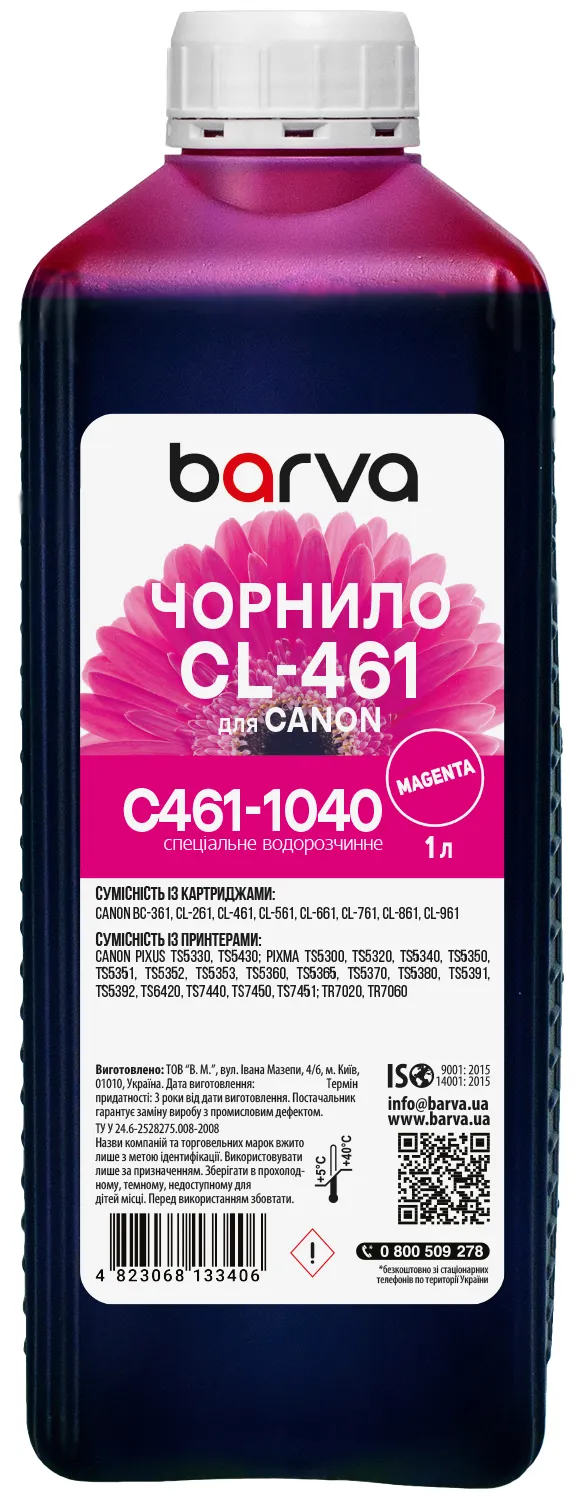 Вы можете купить Чернила для Canon CL-461 M специальные 1 л, водорастворимые, пурпурные Barva (C461-1040) в нашем интернет-магазине с доставкой по Киеву и всей Украине.