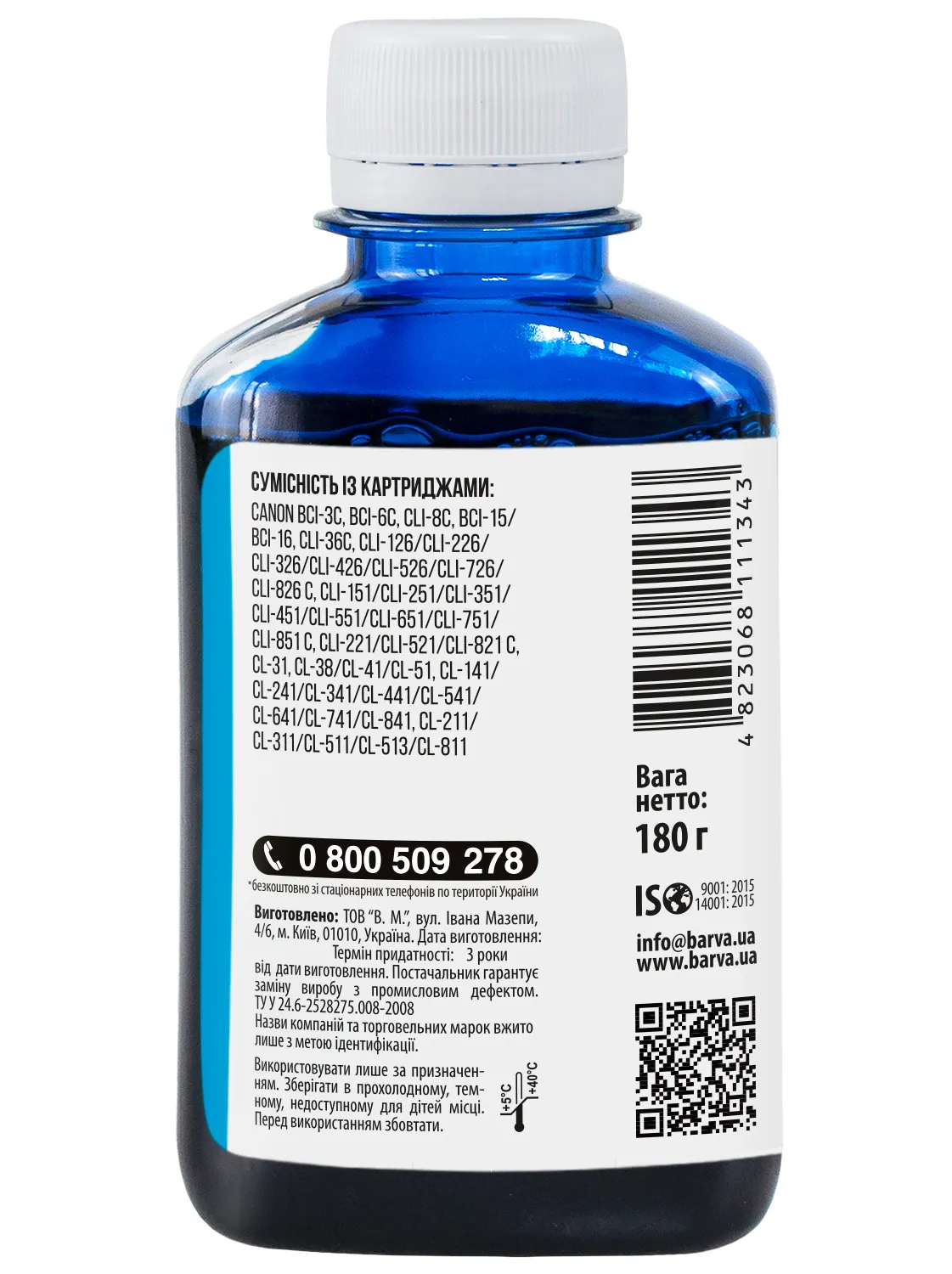 Данная краска для принтера Canon Barva имеет фасовку – 180 мл: