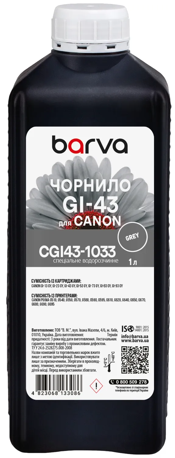 Вы можете купить Чернила для Canon GI-43 GY специальные 1 л, водорастворимые, серые Barva (CGI43-1033) в нашем интернет-магазине с доставкой по Киеву и всей Украине.