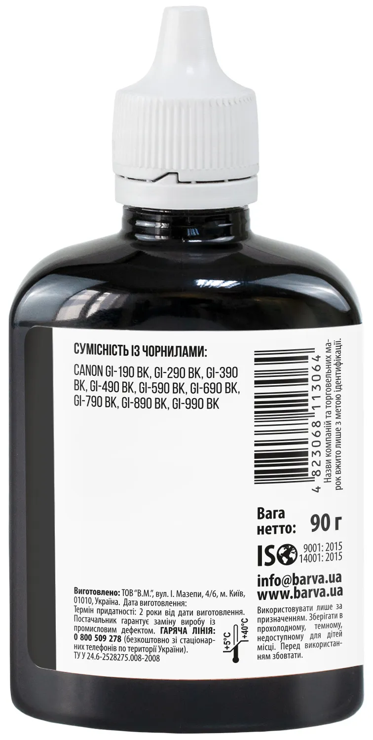 Чернила для Canon Pixma G1411/G2411/G3411, совместимые GI-490 BK, специальные, 90 г, пигментные, черные Barva (G490-507) - заказывайте на сайте patronservice.ua