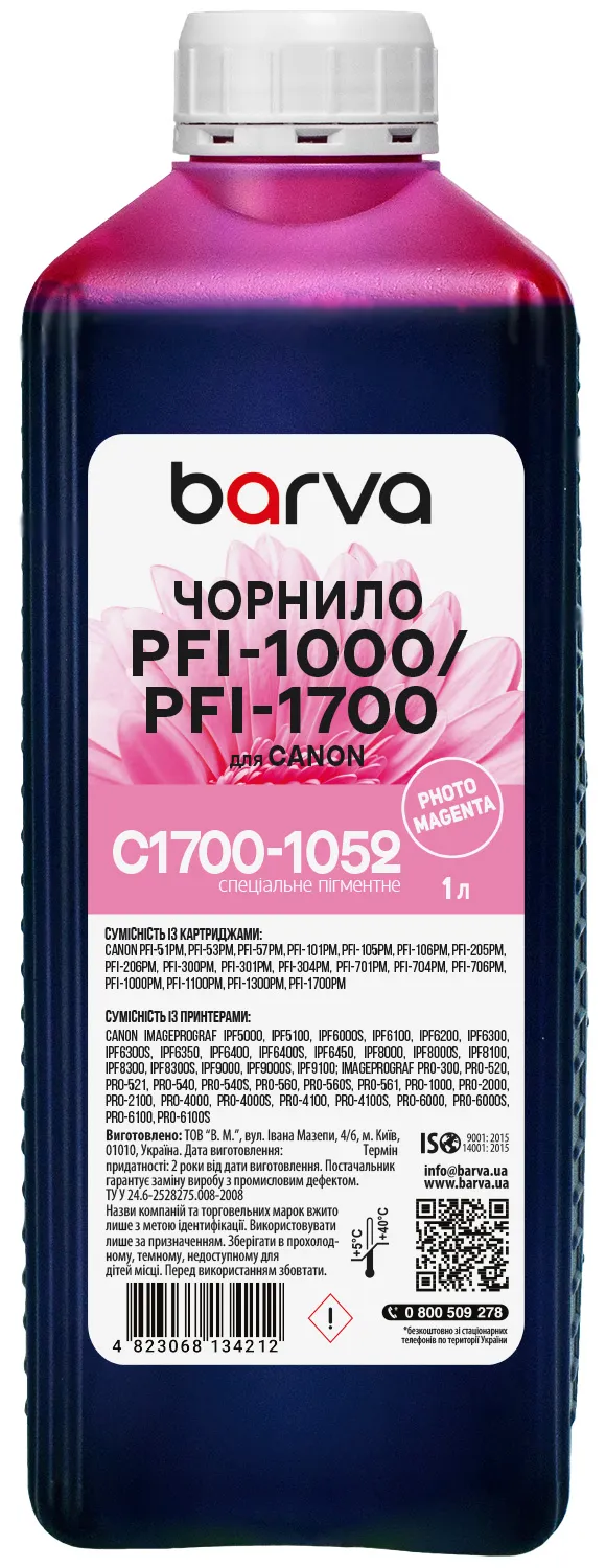 Вы можете купить Чернила для Canon PFI-1000/PFI-1700 PM специальные 1 л, пигментные, фото-пурпурные Barva (C1700-1052) в нашем интернет-магазине с доставкой по Киеву и всей Украине.