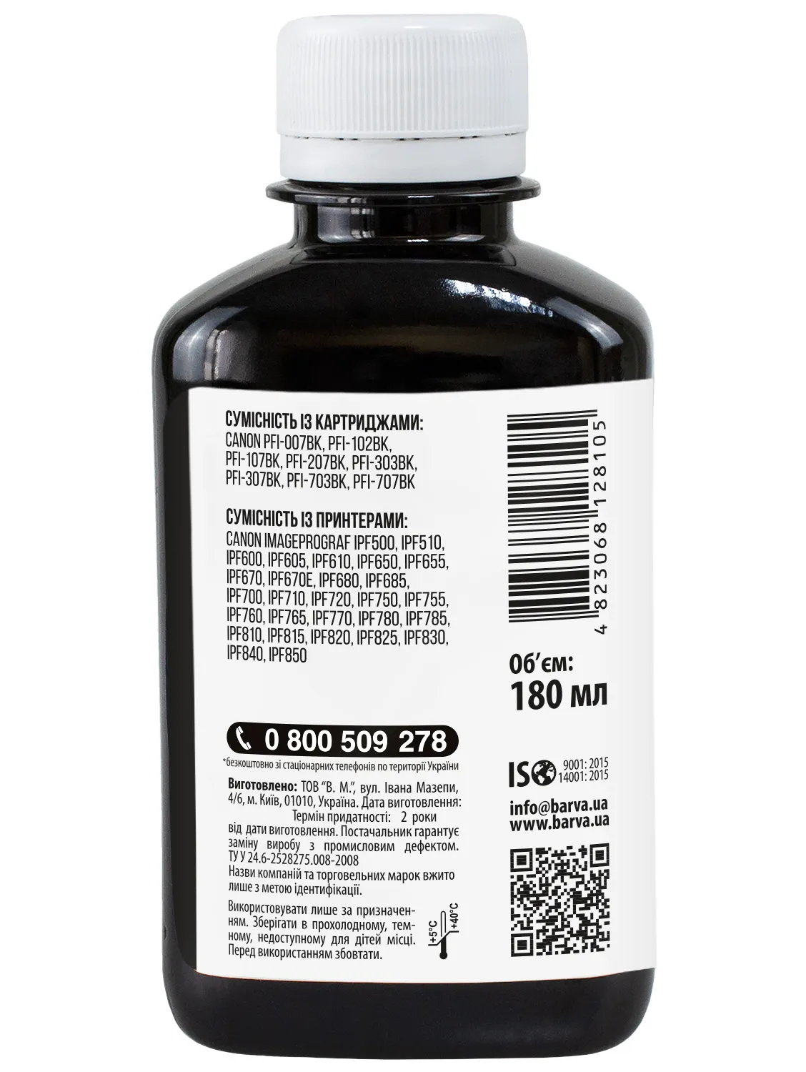 Данная краска для принтера Canon Barva имеет фасовку – 180 мл: