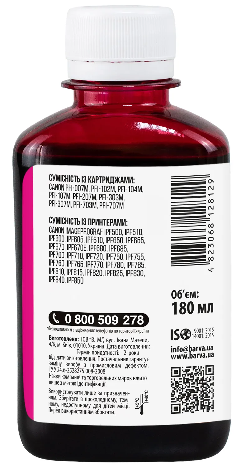 Чернила для Canon PFI-102/PFI-107 M специальные 180 мл, водорастворимые, пурпурные Barva (C107-886) - заказывайте на сайте patronservice.ua
