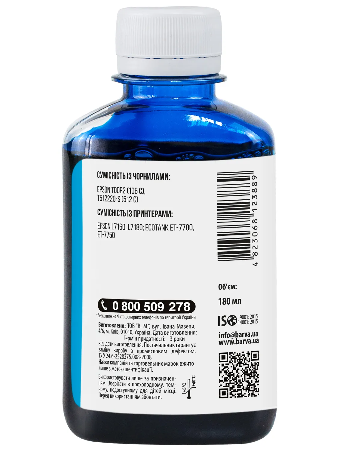 Вы можете купить Чернила совместимые для Epson 106 C специальные 180 мл, водорастворимые, голубые Barva (E106-788) в нашем интернет-магазине с доставкой по Киеву и всей Украине.