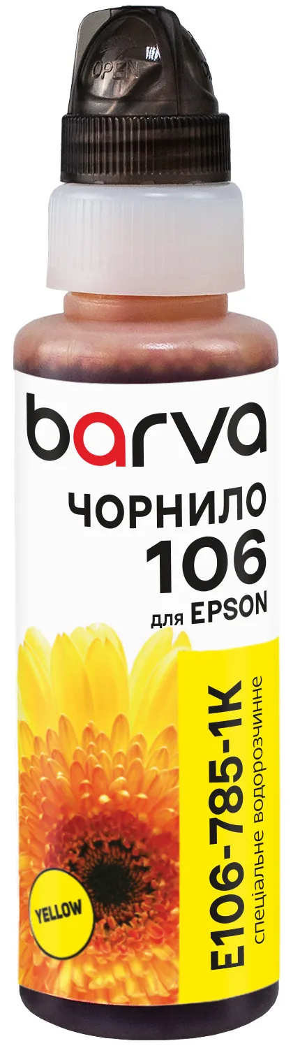 - Чернила совместимые для Epson 106 Y специальные 100 мл, флакон OneKey (1K), водорастворимые, желтые Barva (E106-785-1K)