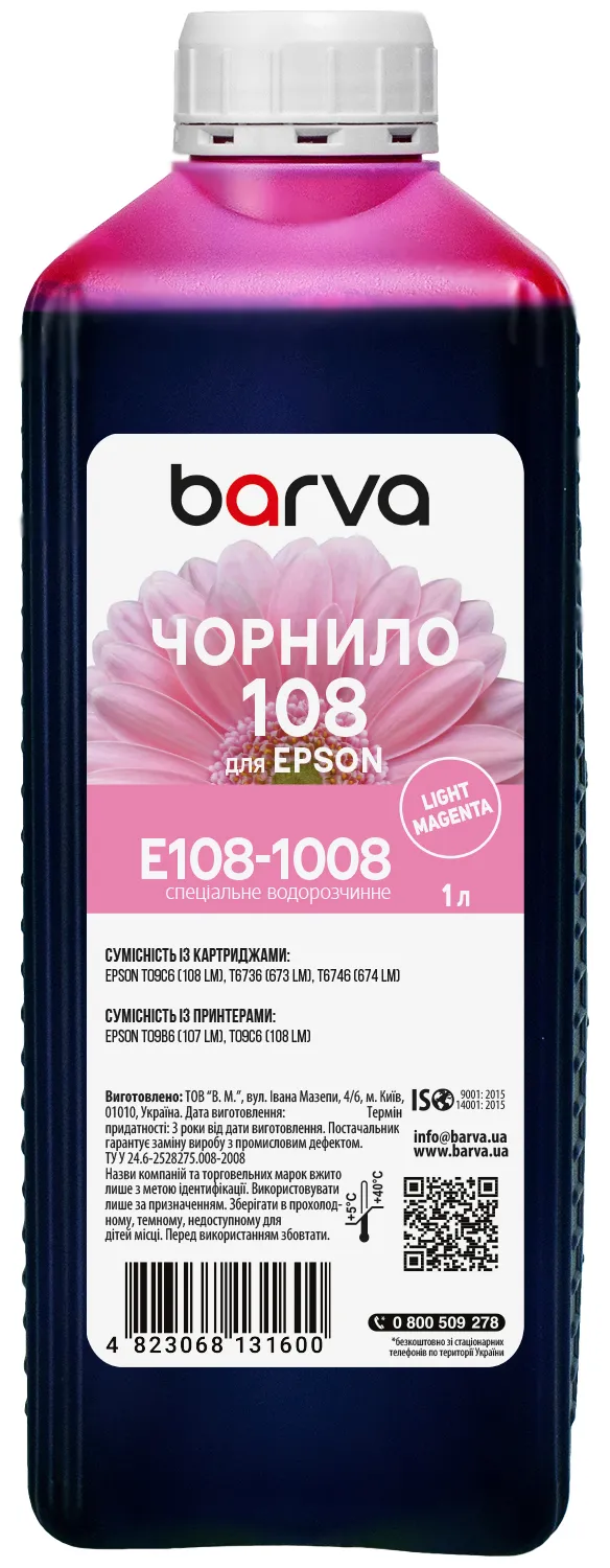 Чернила для Epson 108 LM специальные 1 л, водорастворимые, светло-пурпурные Barva (E108-1008) описание: