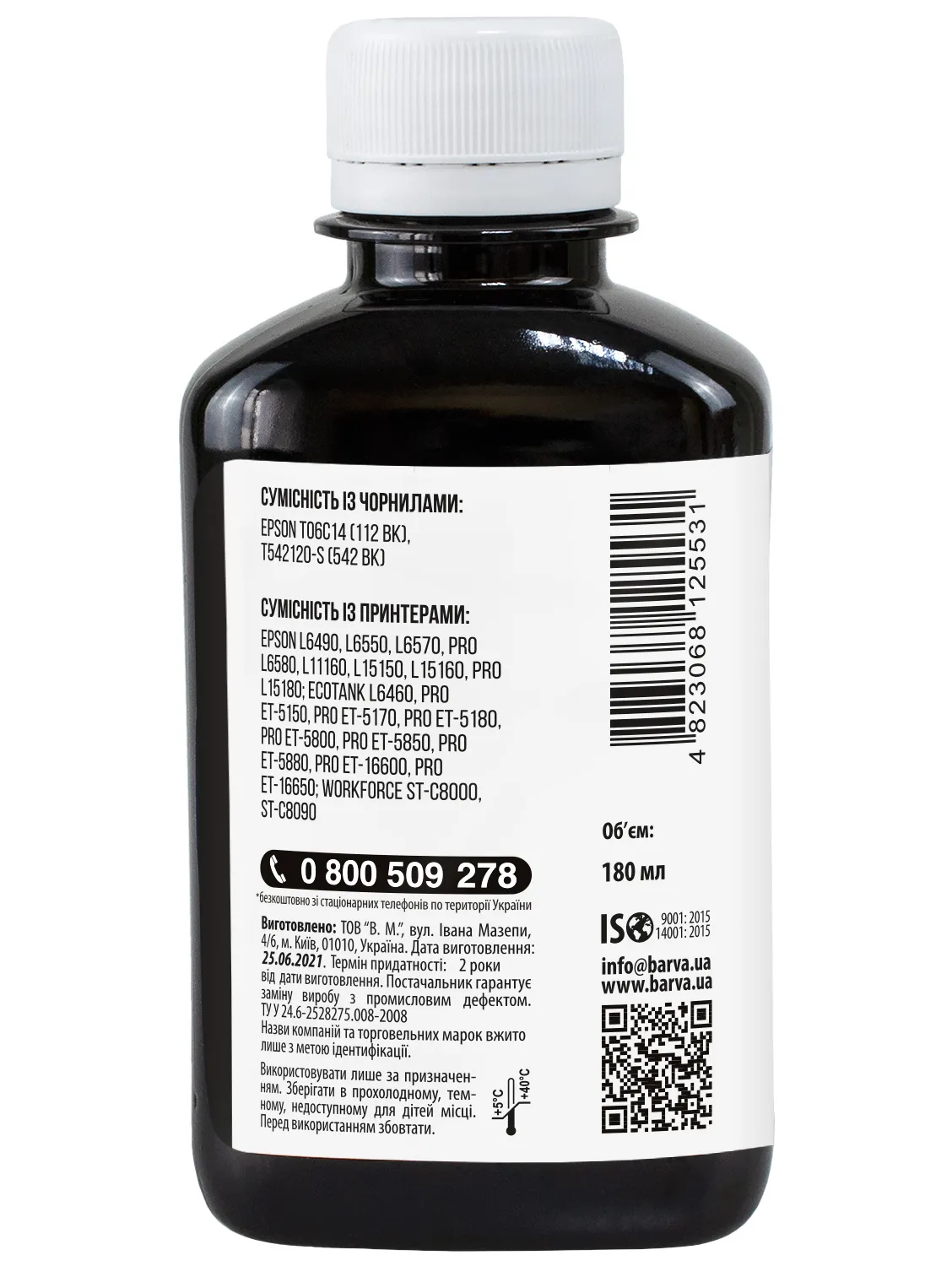 Чернила совместимые для Epson 112 BK специальные 180 мл, пигментные, черные Barva (E112-821) - лучший выбор на сайте patronservice.ua