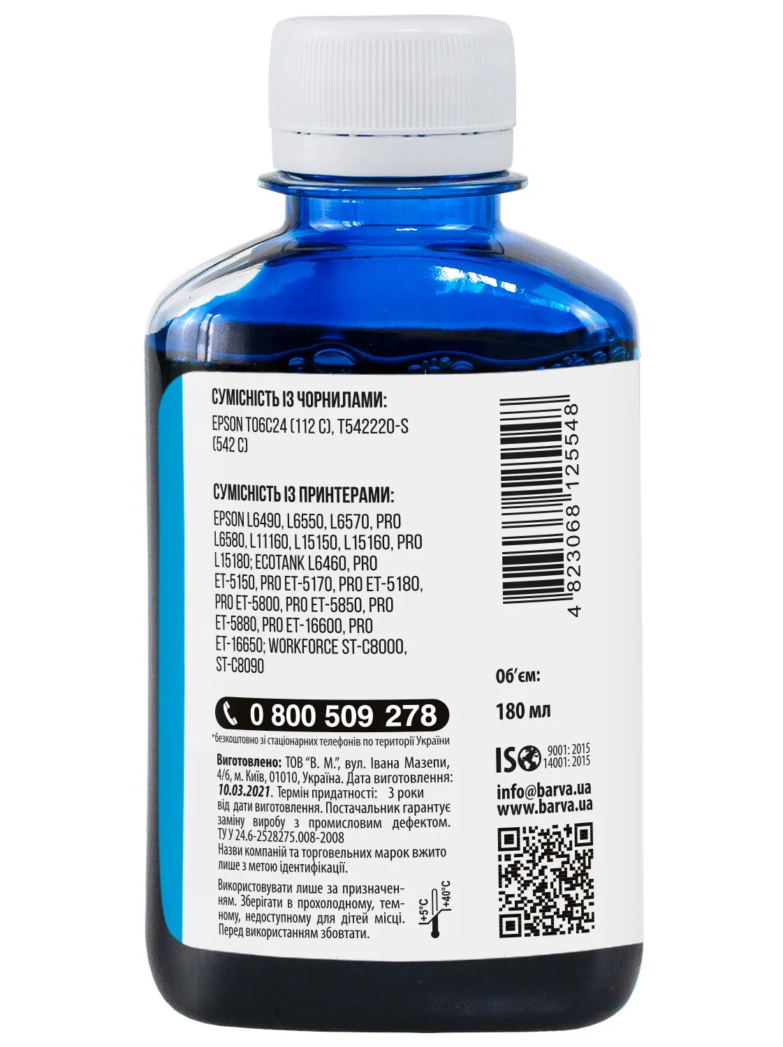 Украинская компания ООО «В.М.» занимается производством чернил под торговой маркой Barva уже много лет. На базе собственной лаборатории осуществляется как разработка новых формул, так и непрерывный контроль качества выпускаемой продукции. При производстве чернил производитель следует стандартам ISO 9001:2015 и ISO 14001:2015.