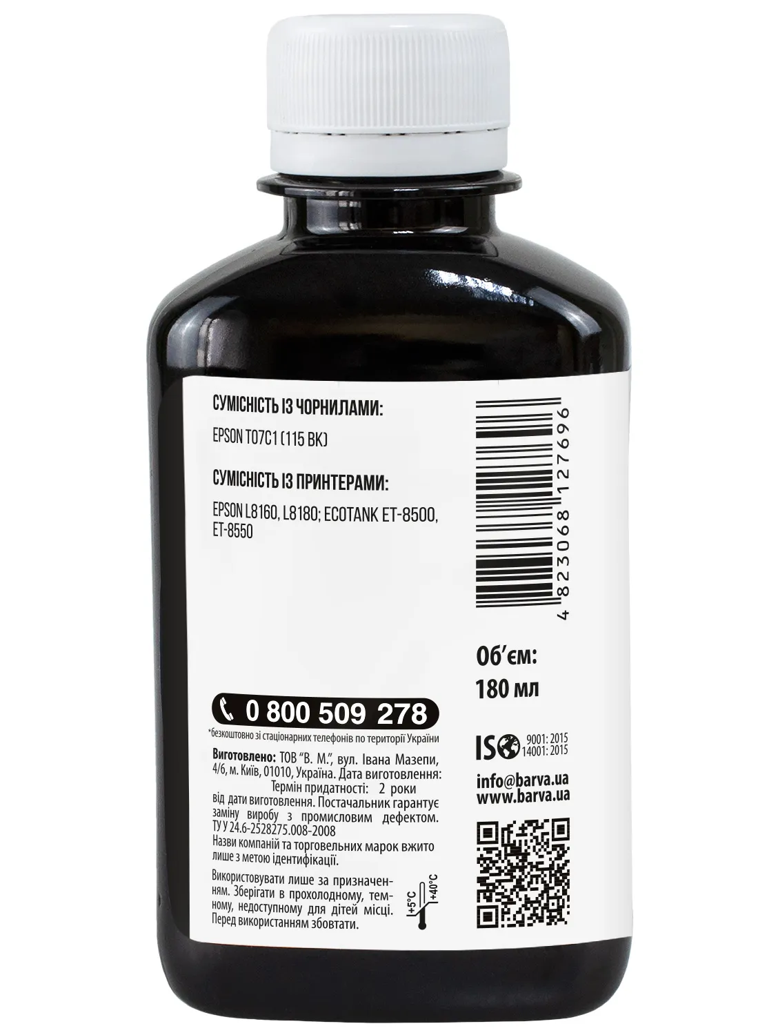 Украинская компания ООО «В.М.» занимается производством чернил под торговой маркой Barva уже много лет. На базе собственной лаборатории осуществляется как разработка новых формул, так и непрерывный контроль качества выпускаемой продукции. При производстве чернил производитель следует стандартам ISO 9001:2015 и ISO 14001:2015.