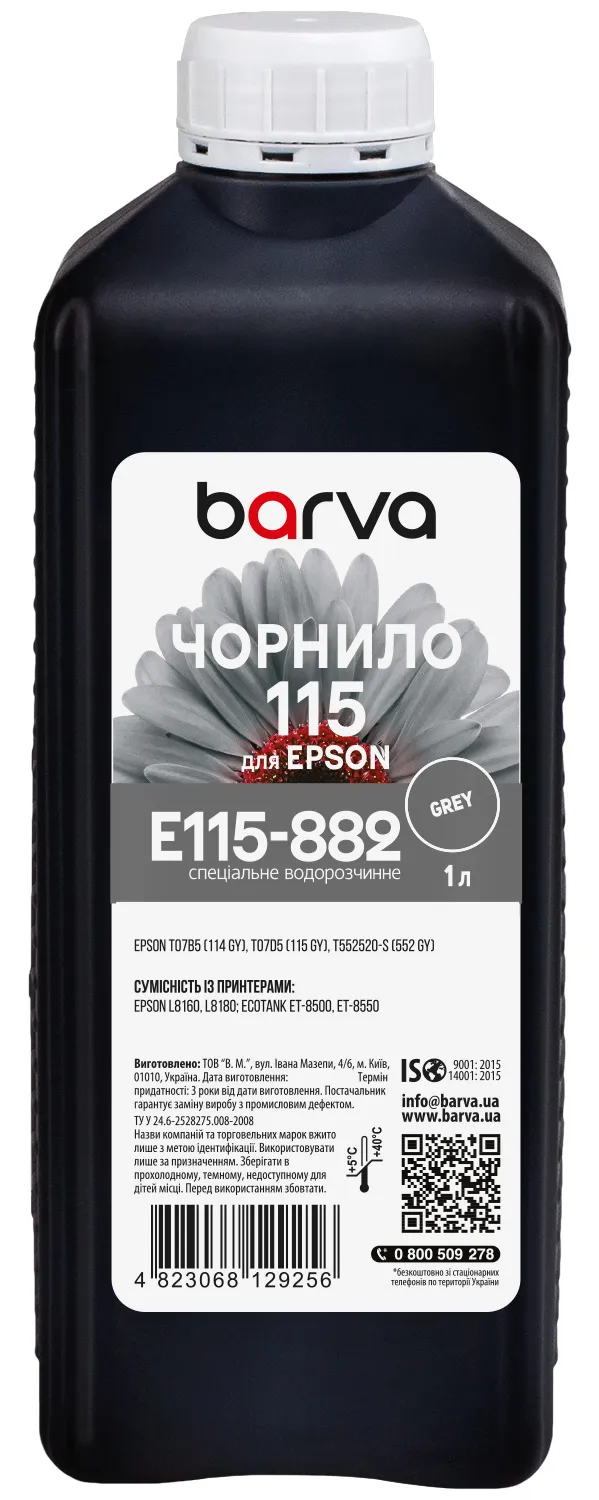Чернила для Epson 115 GY специальные 1 л, водорастворимые, серые Barva (E115-882) - быстрая и удобная доставка