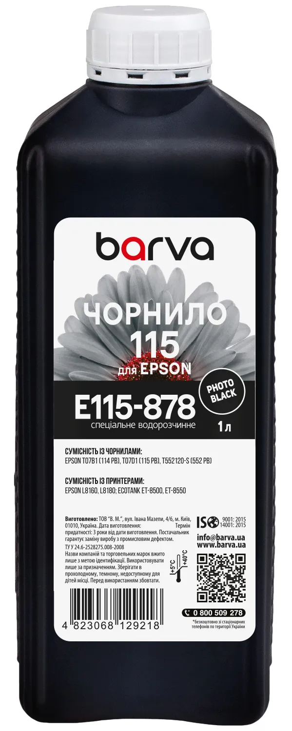 Вы можете купить Чернила для Epson 115 PB специальные 1 л, водорастворимые, фото-черные Barva (E115-878) в нашем интернет-магазине с доставкой по Киеву и всей Украине.
