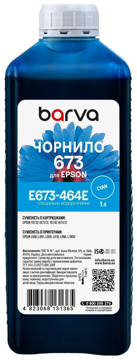 Вы можете купить Чернила для Epson 673 C специальные 1 л, водорастворимые, голубые Barva (E673-464e) в нашем интернет-магазине с доставкой по Киеву и всей Украине.