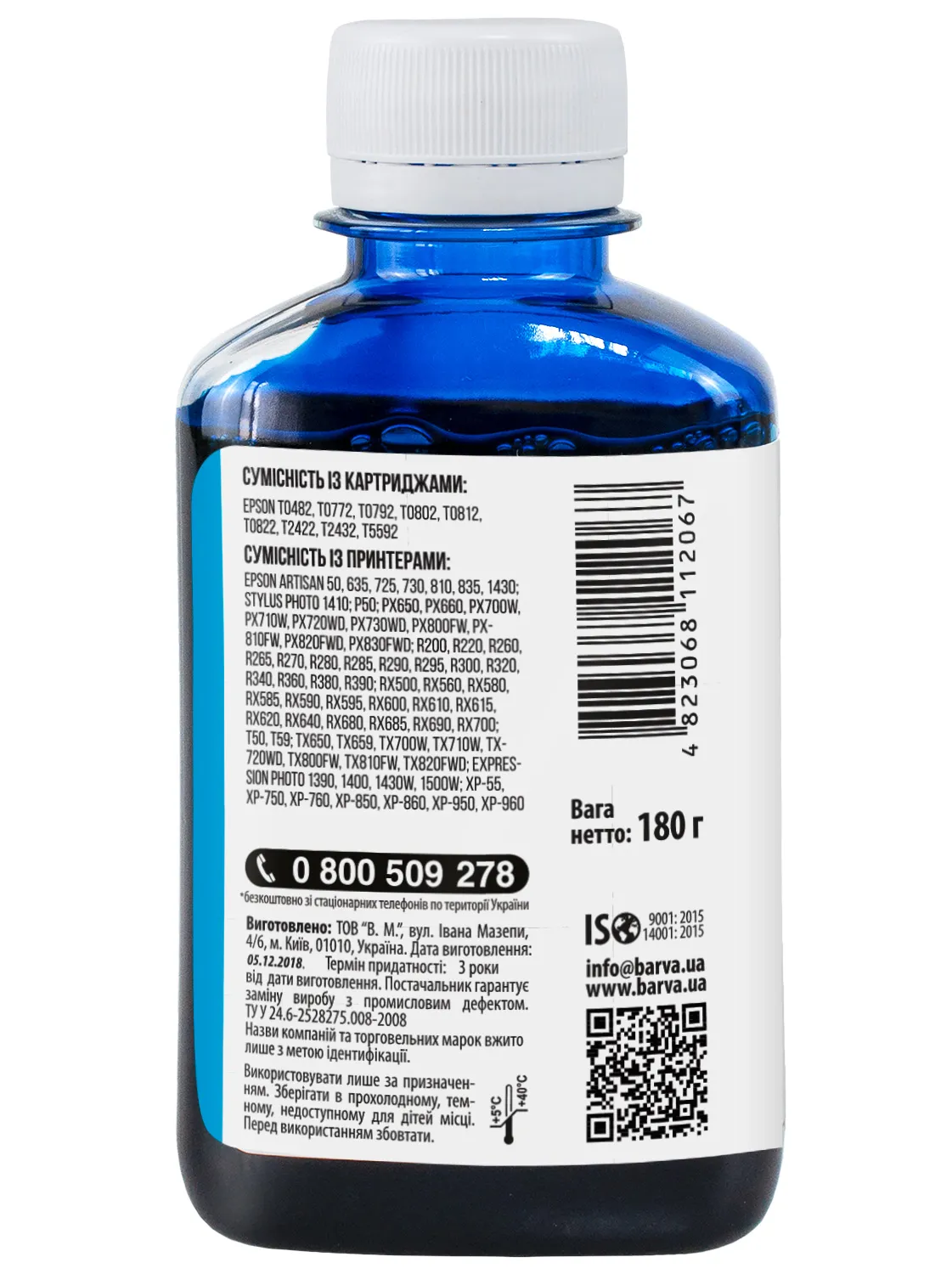 Украинская компания ООО «В.М.» занимается производством чернил под торговой маркой Barva уже много лет. На базе собственной лаборатории осуществляется как разработка новых формул, так и непрерывный контроль качества выпускаемой продукции. При производстве чернил производитель следует стандартам ISO 9001:2015 и ISO 14001:2015.