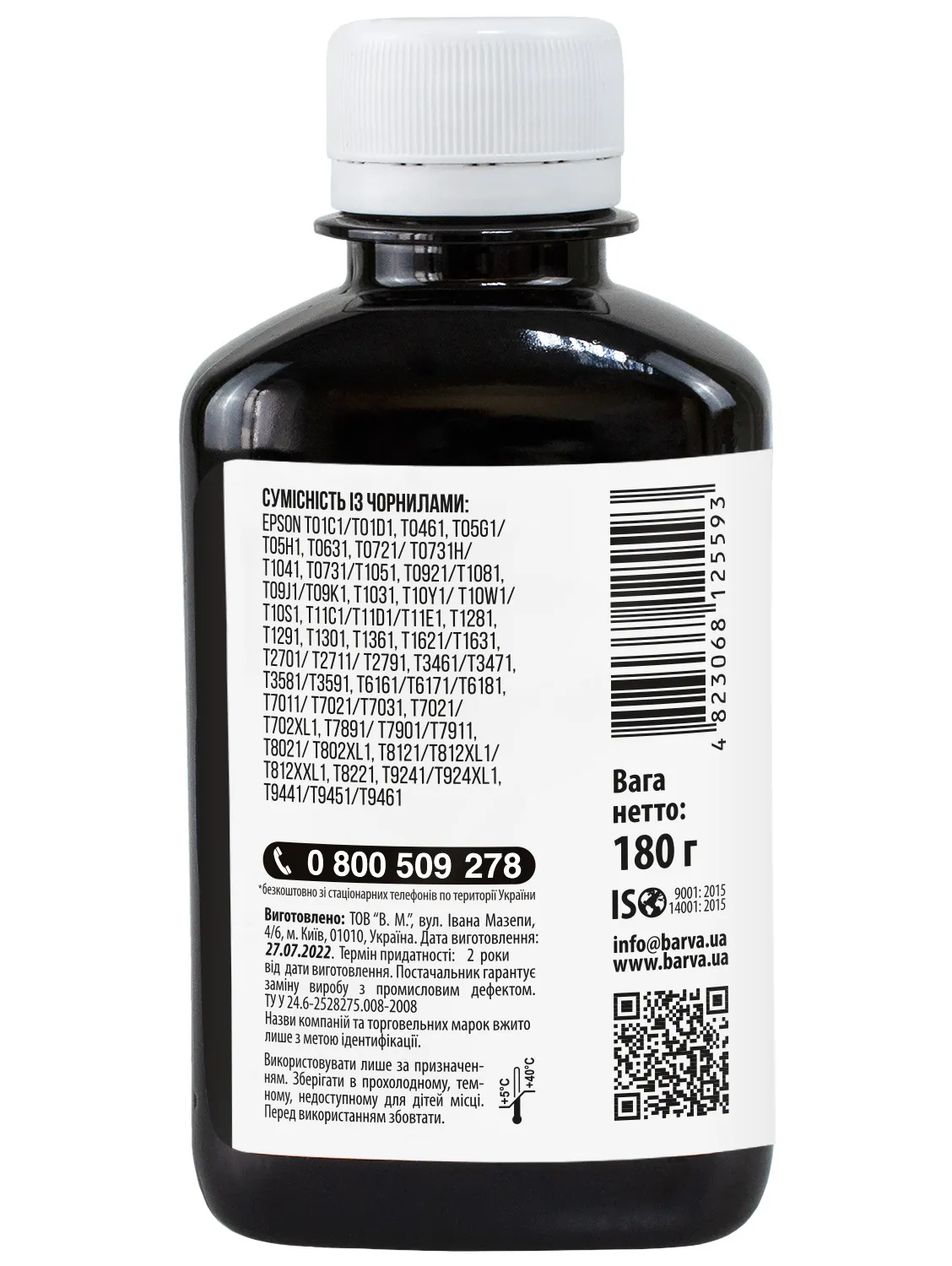 Украинская компания ООО «В.М.» занимается производством чернил под торговой маркой Barva уже много лет. На базе собственной лаборатории осуществляется как разработка новых формул, так и непрерывный контроль качества выпускаемой продукции. При производстве чернил производитель следует стандартам ISO 9001:2015 и ISO 14001:2015.