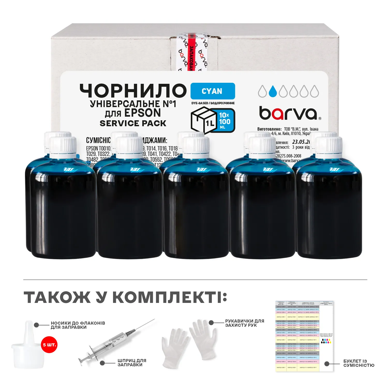 Чернила совместимые для Epson универсальные №1 10x100 мл, водорастворимые, голубые Service Pack Barva (EU1-1SP-C) - лучший выбор на сайте patronservice.ua