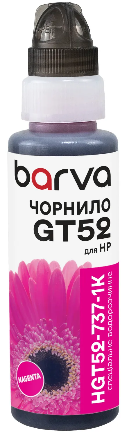 - Чернила для HP GT52 M специальные 100 мл, флакон OneKey (1K), водорастворимые, пурпурные Barva (HGT52-737-1K)