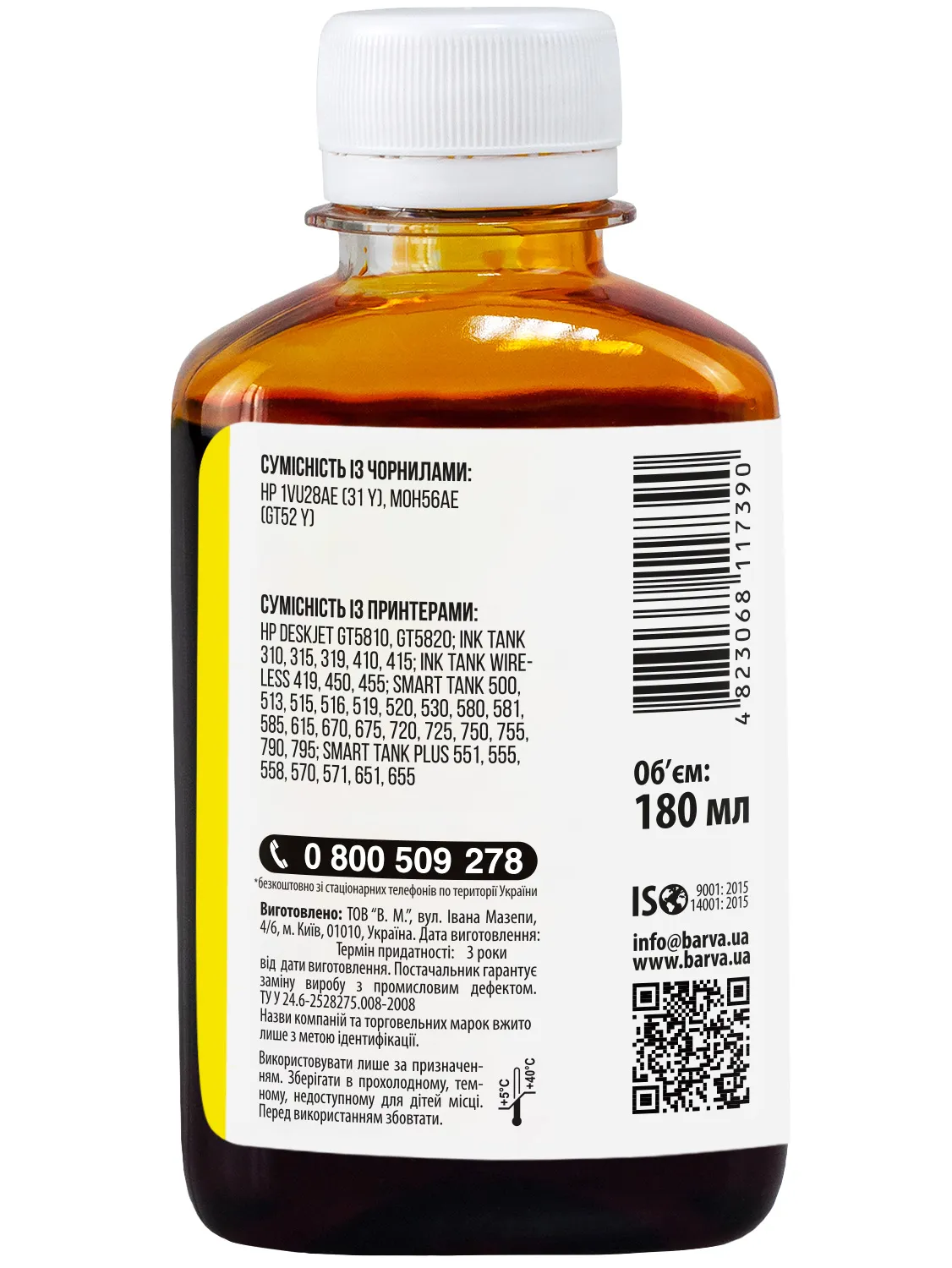 Украинская компания ООО «В.М.» занимается производством чернил под торговой маркой Barva уже много лет. На базе собственной лаборатории осуществляется как разработка новых формул, так и непрерывный контроль качества выпускаемой продукции. При производстве чернил производитель следует стандартам ISO 9001:2015 и ISO 14001:2015.