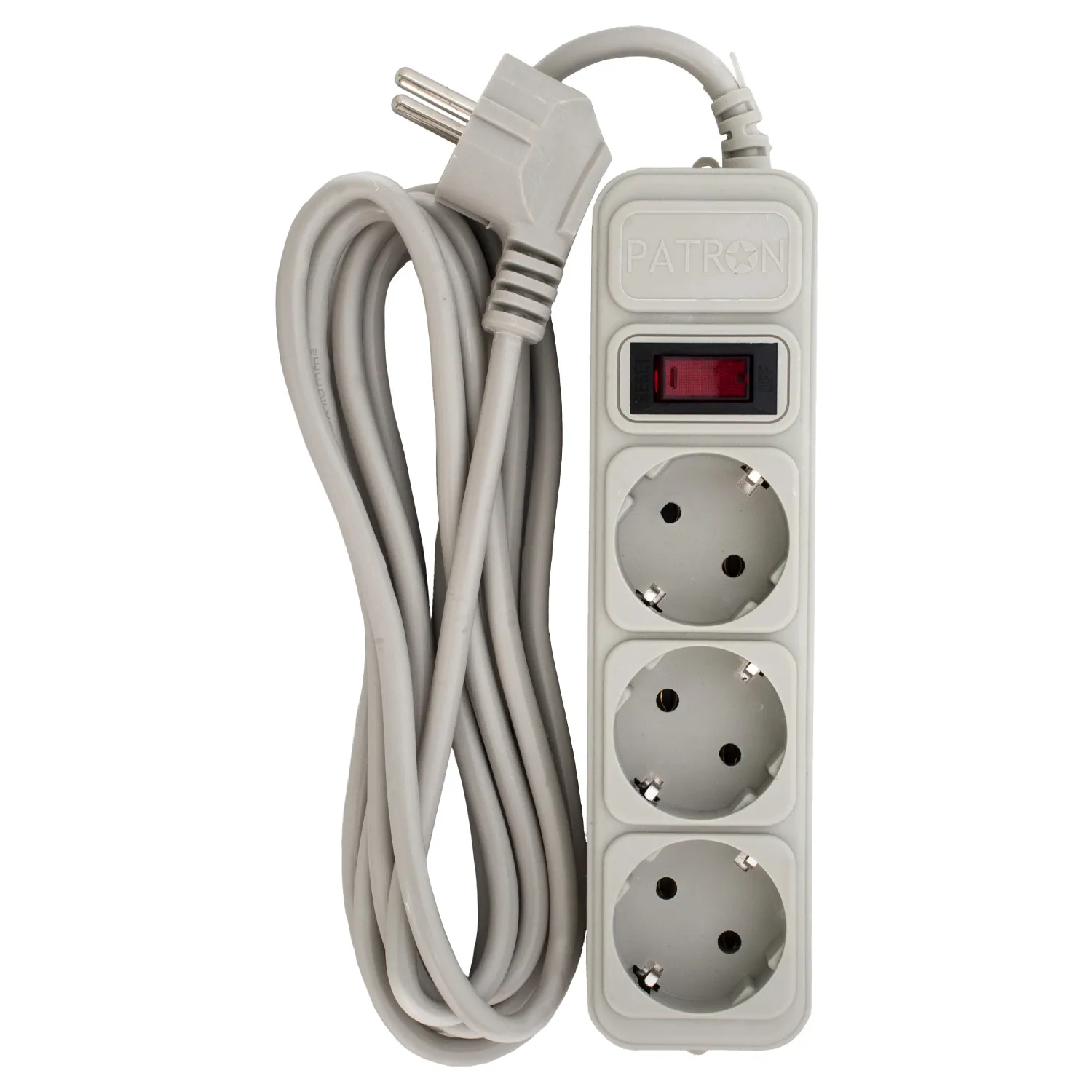 Фильтр сетевой 3 розетки, 3 м, 10 А, 250 В, 3*1мм2, серый Patron (SP-1033-GR)