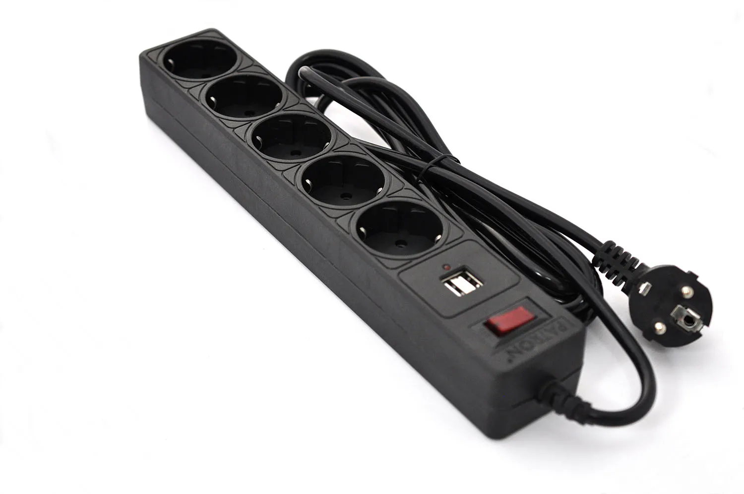 Фильтр сетевой 5 розеток + 2 x USB 2.0 2.1A, 3 м, черный Patron (SP-53-USB)