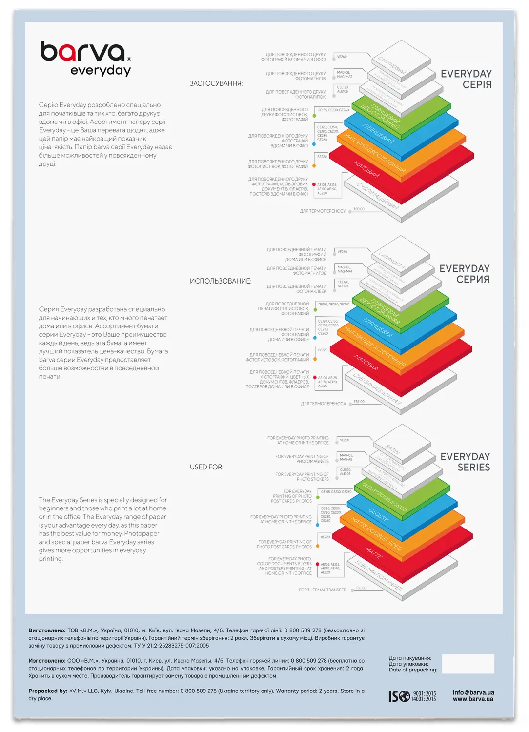 Под торговой маркой Barva на рынок выходит широкий ассортимент материалов для струйной печати, который поможет Вам с выполнением различных задач – от печати фотографий, до изготовления рекламных и маркетинговых материалов. Носители для струйной печати под данной торговой маркой выпускаются на рынок украинской компанией ТОВ «В. М.» с 2003 года и уже успели завоевать доверие пользователей неизменно высоким качеством и доступными ценами.