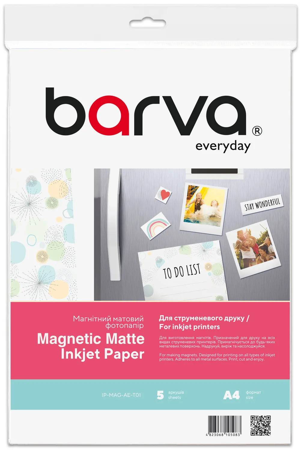 Фотобумага магнитная матовая 650 г/м2 (0.3 мм), А4, 5 л Everyday Barva (IP-MAG-AE-T01) - гарантия качества