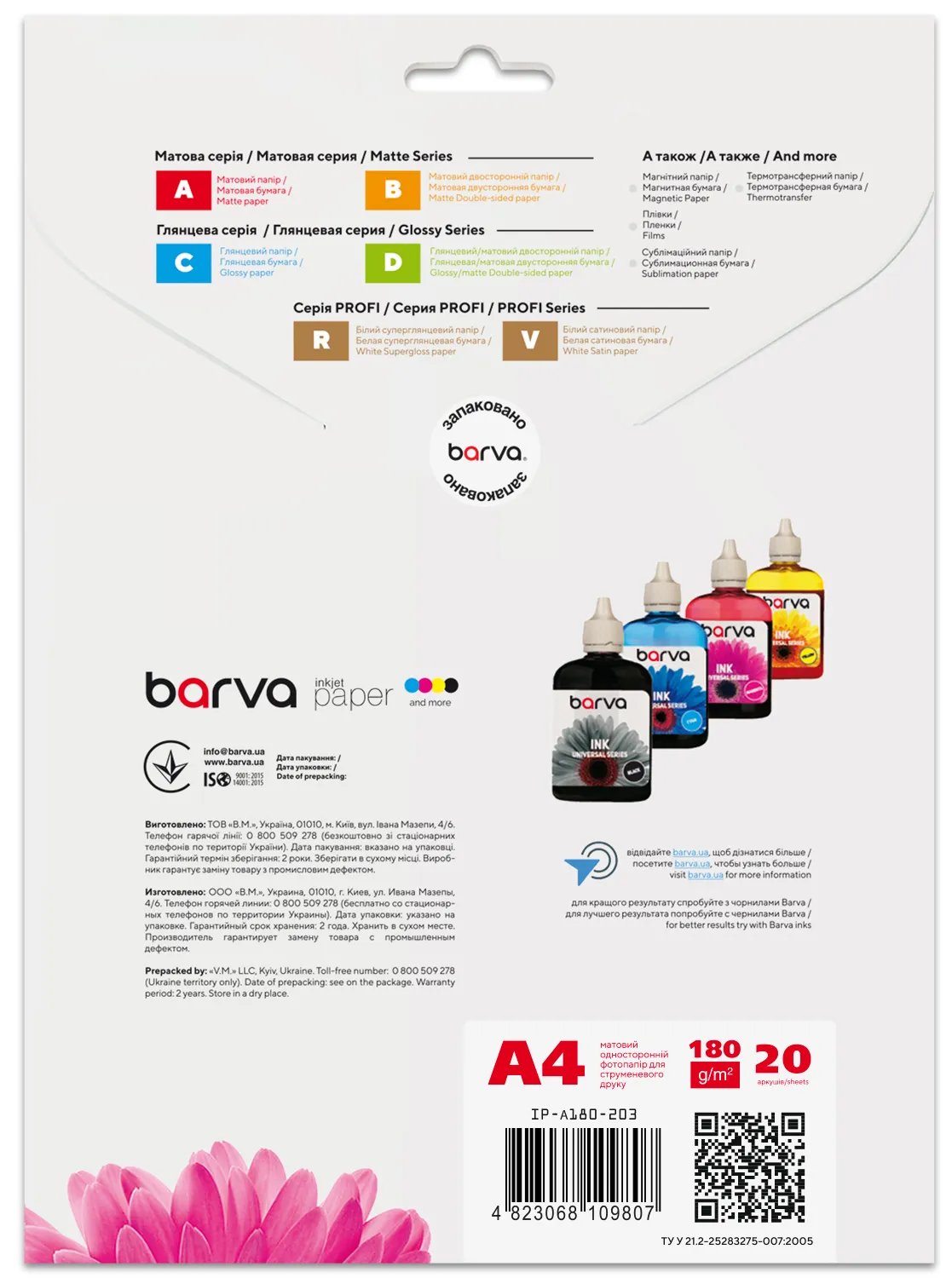 Фотобумага матовая 180 г/м2, А4, 20 л Original Barva (IP-A180-203) - заказывайте на сайте patronservice.ua