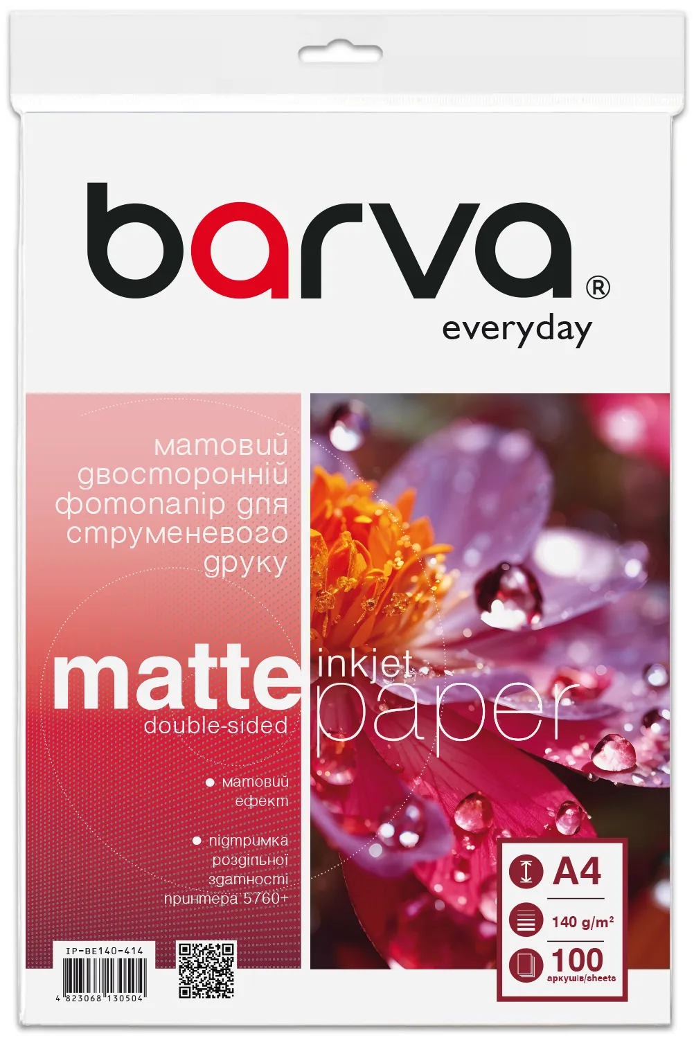 - Фотобумага матовая двусторонняя 140 г/м2, A4, 100 л Everyday Barva (IP-BE140-414)