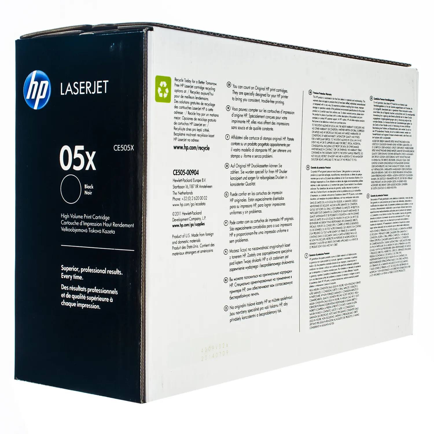 Оригинальный картридж CE505X, произведен компанией HP, которая гарантирует качественную печать на протяжении всего ресурса - 6500 страниц. Картридж 05X черный HP (CE505X) относится к группе оригинальных расходных материалов, единственным минусом которых является высокая стоимость.