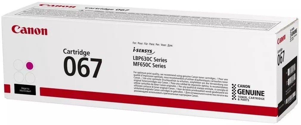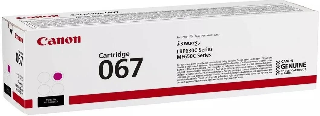 Оригинальный картридж разработан компанией Canon, что является гарантией высокого качества и обеспечивает стабильную работу на протяжении всего ресурса – страниц. Картридж 067 пурпурный Canon (5100C002) относится к группе оригинальных расходных материалов, единственным минусом которых является высокая стоимость.