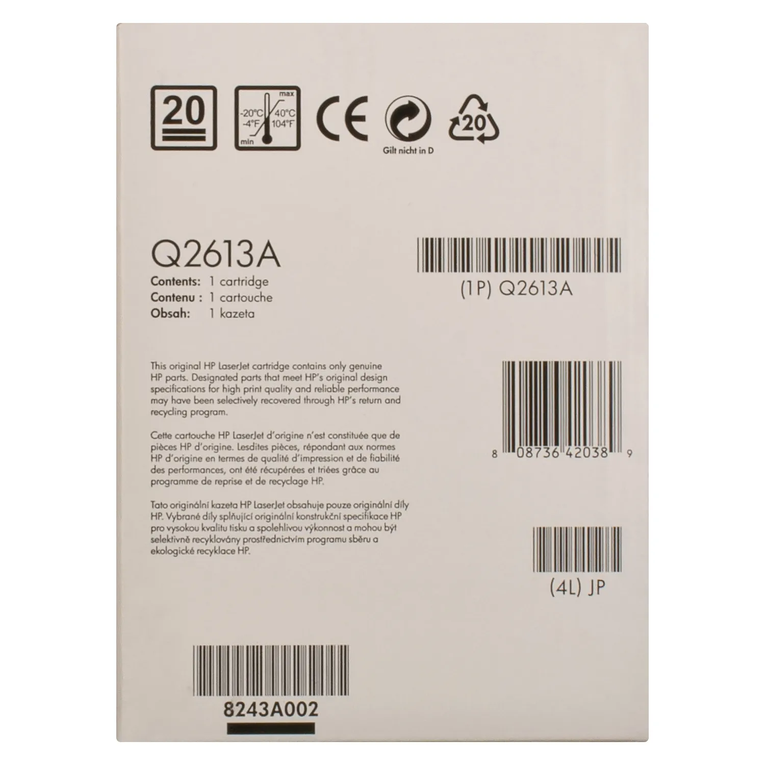 Оригинальный картридж Q2613A, произведен компанией HP, которая гарантирует качественную печать на протяжении всего ресурса - 2500 страниц. Картридж 13A черный HP (Q2613A) относится к группе оригинальных расходных материалов, единственным минусом которых является высокая стоимость.