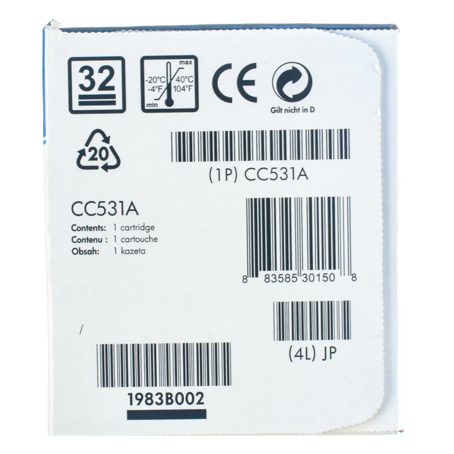 Оригинальный картридж CC531A, произведен компанией HP, которая гарантирует качественную печать на протяжении всего ресурса - 2800 страниц. Картридж 304A голубой HP (CC531A) относится к группе оригинальных расходных материалов, единственным минусом которых является высокая стоимость.