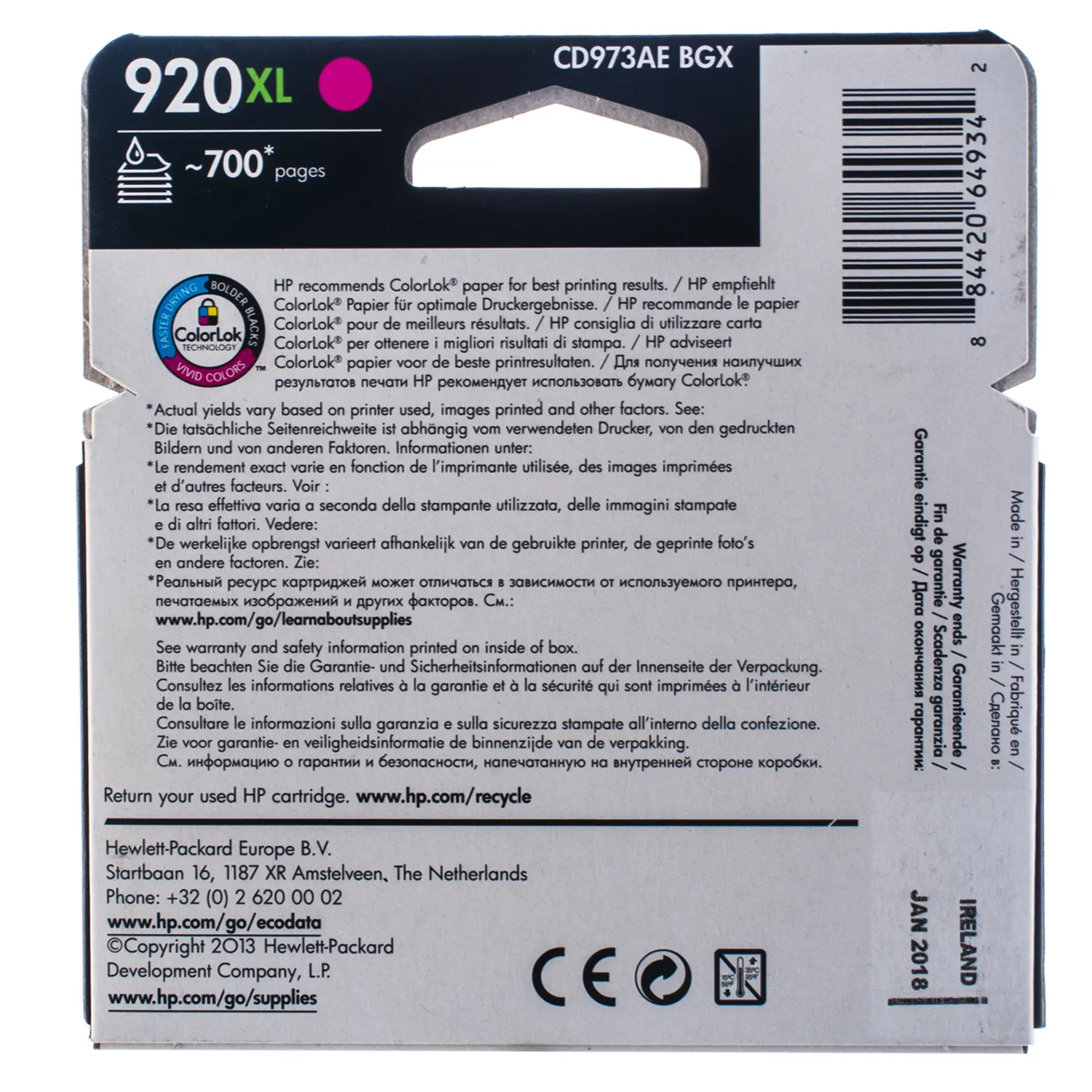 Картридж №920XL 700 стр, пурпурный HP (CD973AE) описание: