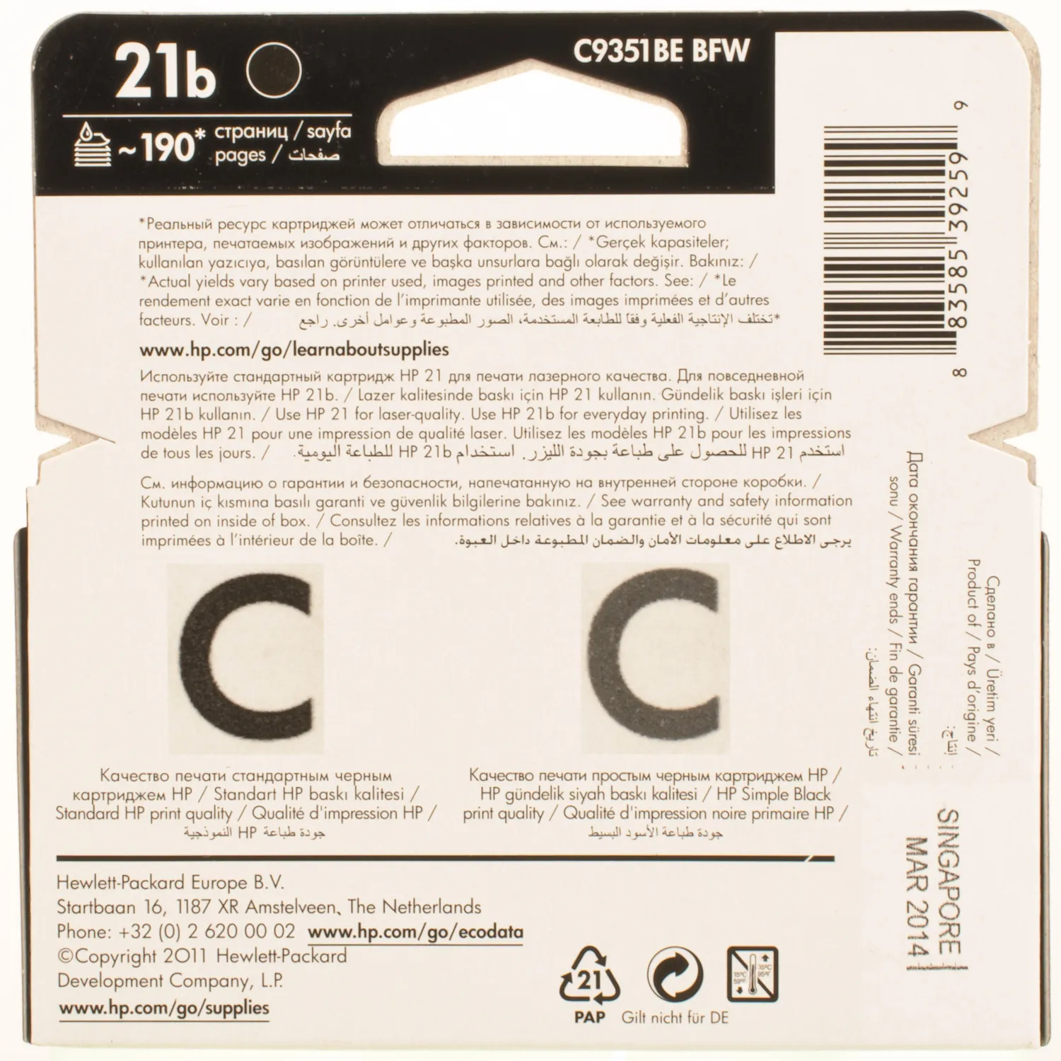 Картридж DJ C9351BE черный HP (№21b) - гарантия качества